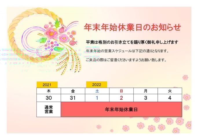 お知らせ · 2021/12/30 本年もありがとうございました! 年内の営業は本日で終了致しました。 本年もお客様に支えられ 無事に1年を終えることができます。 来年は少しゆっくりとお休みをいただき 1月5日(水)より営業開始となります。 12月は何かとバタバタとしてしまい 色々なイベントを開催できなかったので 来年は何かできたらなと思っております! 皆様よい年をお迎えくださいませ😊 陽和堂 tagPlaceholderカテゴリ: コメントをお書きください コメント: 0