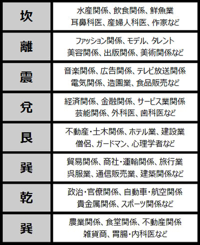 ◎本命卦による適職表